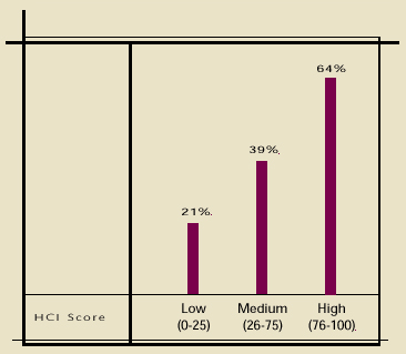summary HCI scores. Those in the low group averaged a 21 percent five-year