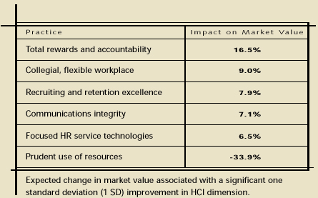 in 19 key HR practices associated with a 26 percent increase in market value.